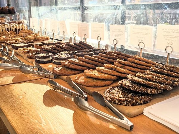 We offer a wide variety of pastries including sticky buns, scones, muffins, and cinnamon rolls, though some items are only available on the weekends. We also offer specialty cakes and sourdough breads.
